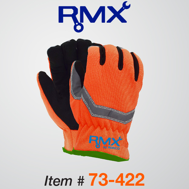 | • High-dexterity construction for precision. • Reinforced synthetic leather thumb saddle and fingertips for durability. |