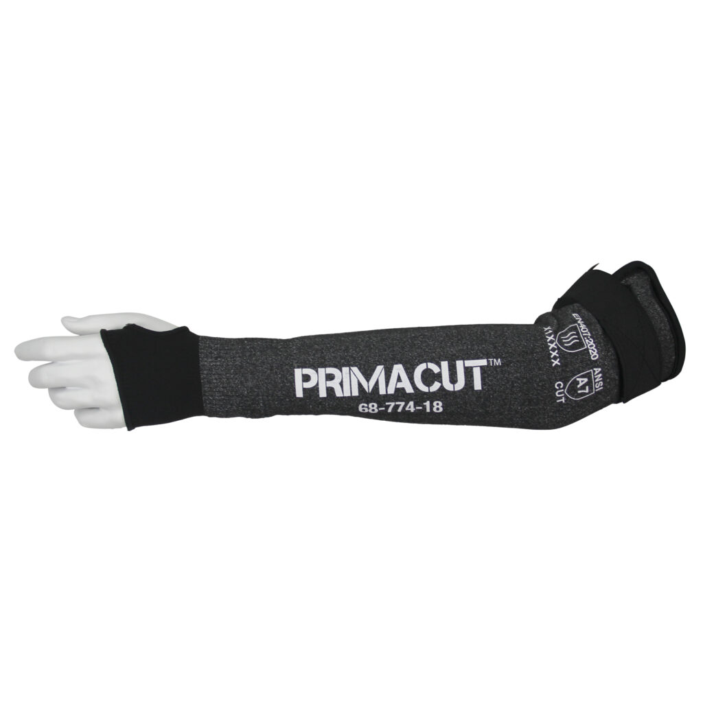 | • 18" HPPE sleeves deliver heavy-duty ANSI A7 cut resistance with heat dissipation, abrasion, tear resistance, and soft, breathable comfort. • Designed with adjustable Velcro closure and nylon thumbloops for a secure fit; washable without losing protective properties. |