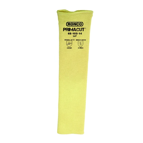 | • 2-ply, 14-inch sleeve made from 100% aramid fiber offers excellent cut, abrasion, and heat resistance up to 400°F (200°C). • Soft, stretchable design fits most arm sizes; compliant with EN 388 Cut Level C and EN 407 Contact Heat Level 1 standards. |