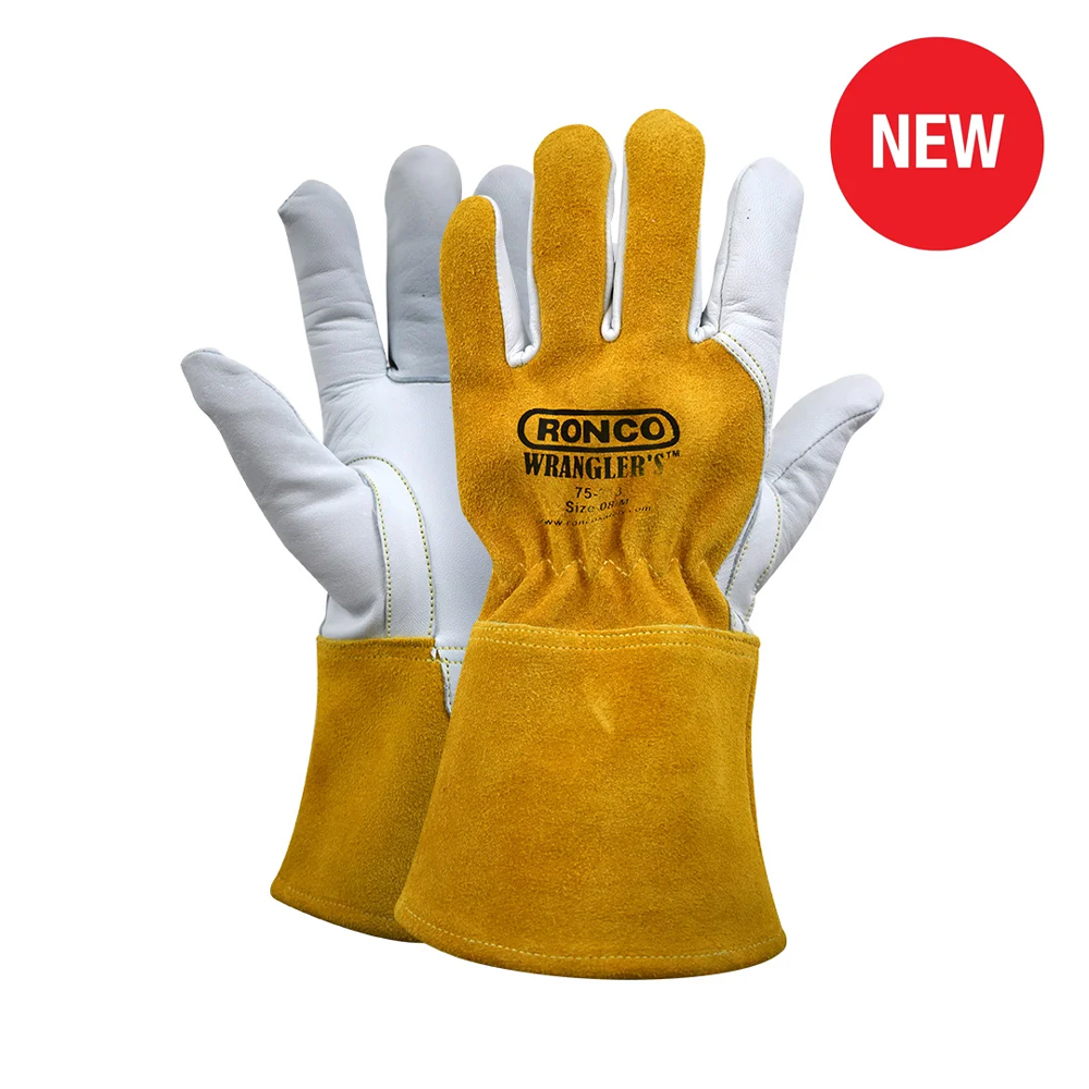 Built for welders who demand control and protection, the Wrangler™ 75-313 gloves feature a premium goatskin palm and split cowhide back that withstand high temperatures while maintaining flexibility. Reinforced thumbs and aramid stitching ensure a secure grip and long-lasting durability. Fleece-lined for comfort and heat resistance, these gloves are designed to excel in MIG welding and fabrication applications.